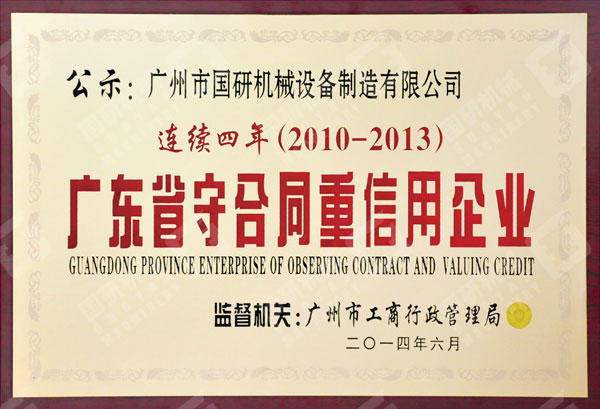 2014年7月,广州市MK.COM设备制造有限公司获得由广东省工商行政管理局授予的2013年度“广州省守合同重信用企业”荣誉称号。这是公司连续多年来多次获此殊荣。