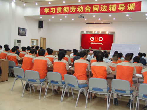 5月9日下午,广州市国砚实业发展有限公司、广州市MK.COM设备制造有限公司在总部大会议厅举行了声势浩大的学习《劳动合同法》活动。该活动由公司党支部书记、副总经理王声跃主持,广东注明律师事务所——广东德法理律师事务所、我司常年法律顾问黄文芳主任律师担任主讲。